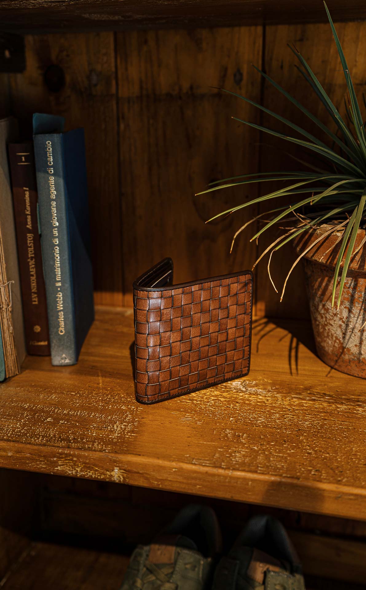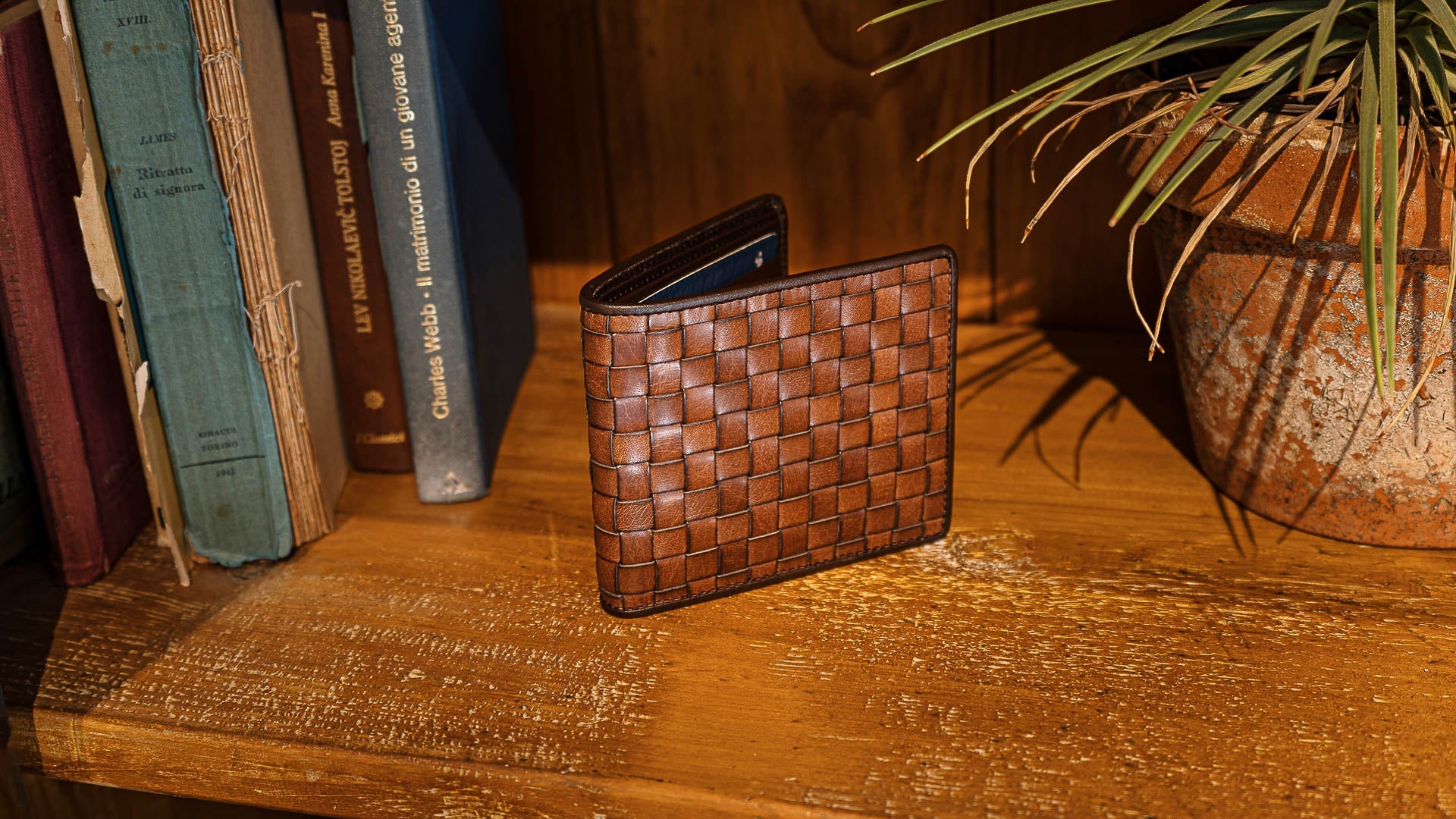 "Carobbi" is the carefully woven horizontal wallet. You'll notice it, that's for sure, but it won't lose its purpose: ten flat pockets to store your cards and two compartments for your banknotes. Finished with French stitching, you can't escape its elegance.