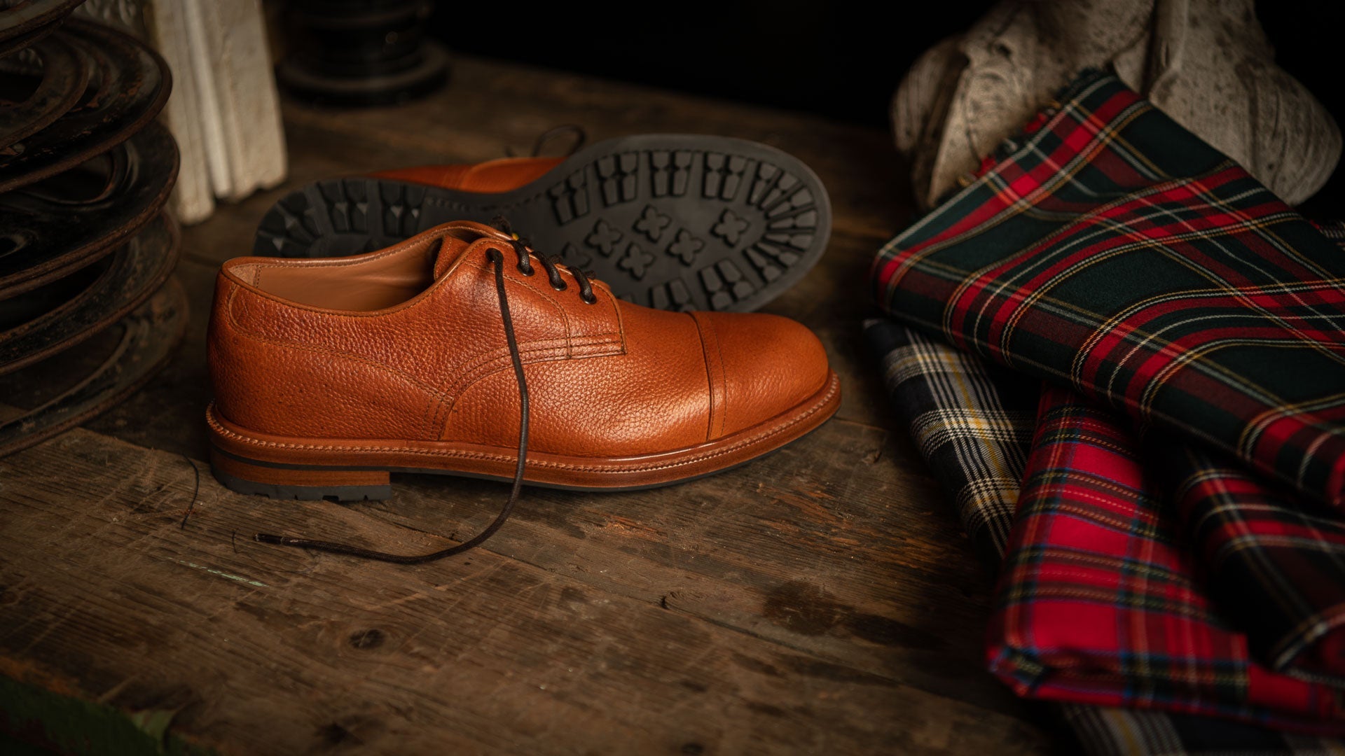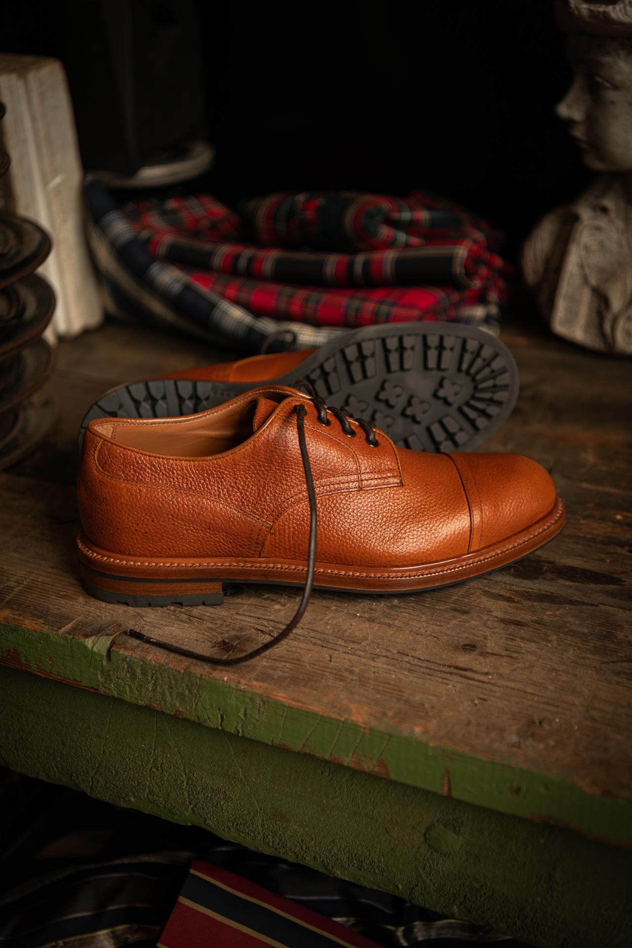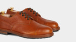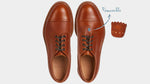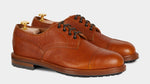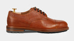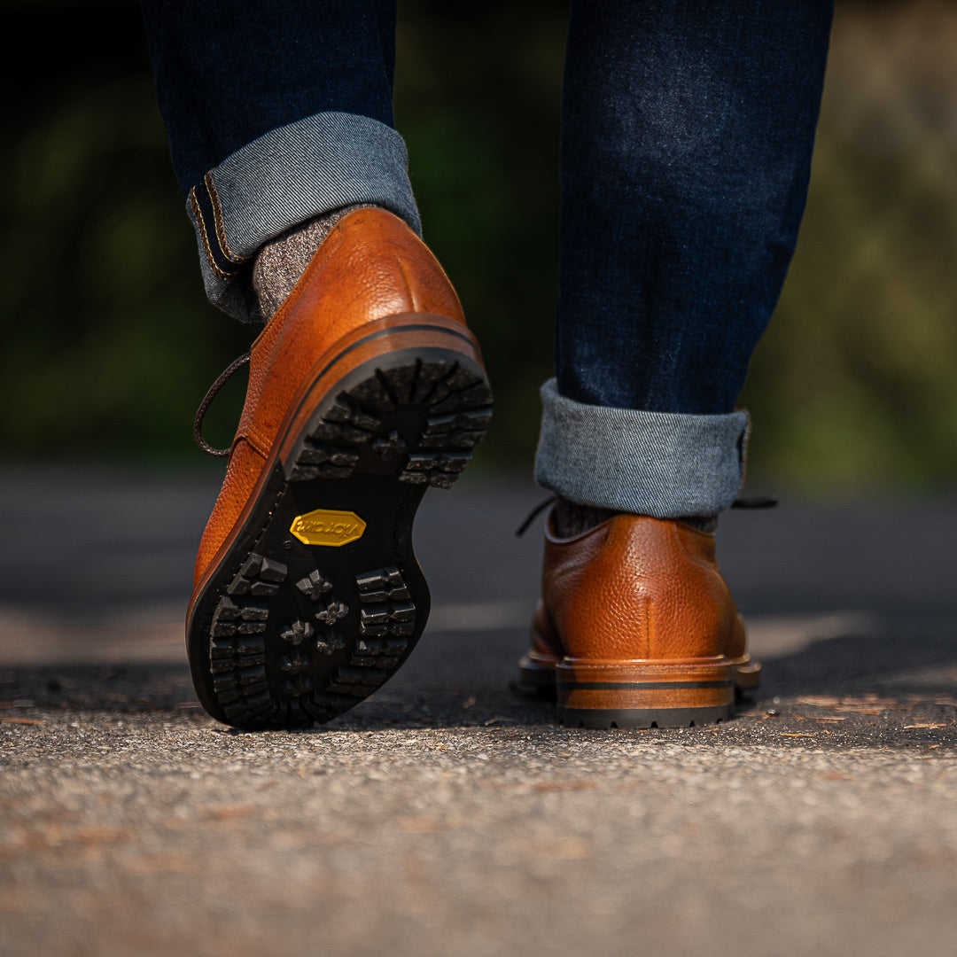 The casual derby with kudu grain leather, exhibiting this wild animal's small imperfections and expressing its country soul. Its elaborate toe box makes it perfect for men who pay attention to details: wear your cognac derby with jeans and a denim shirt, you just know that even rainy days are never a problem with a Vibram sole, just like your weekends in the countryside.