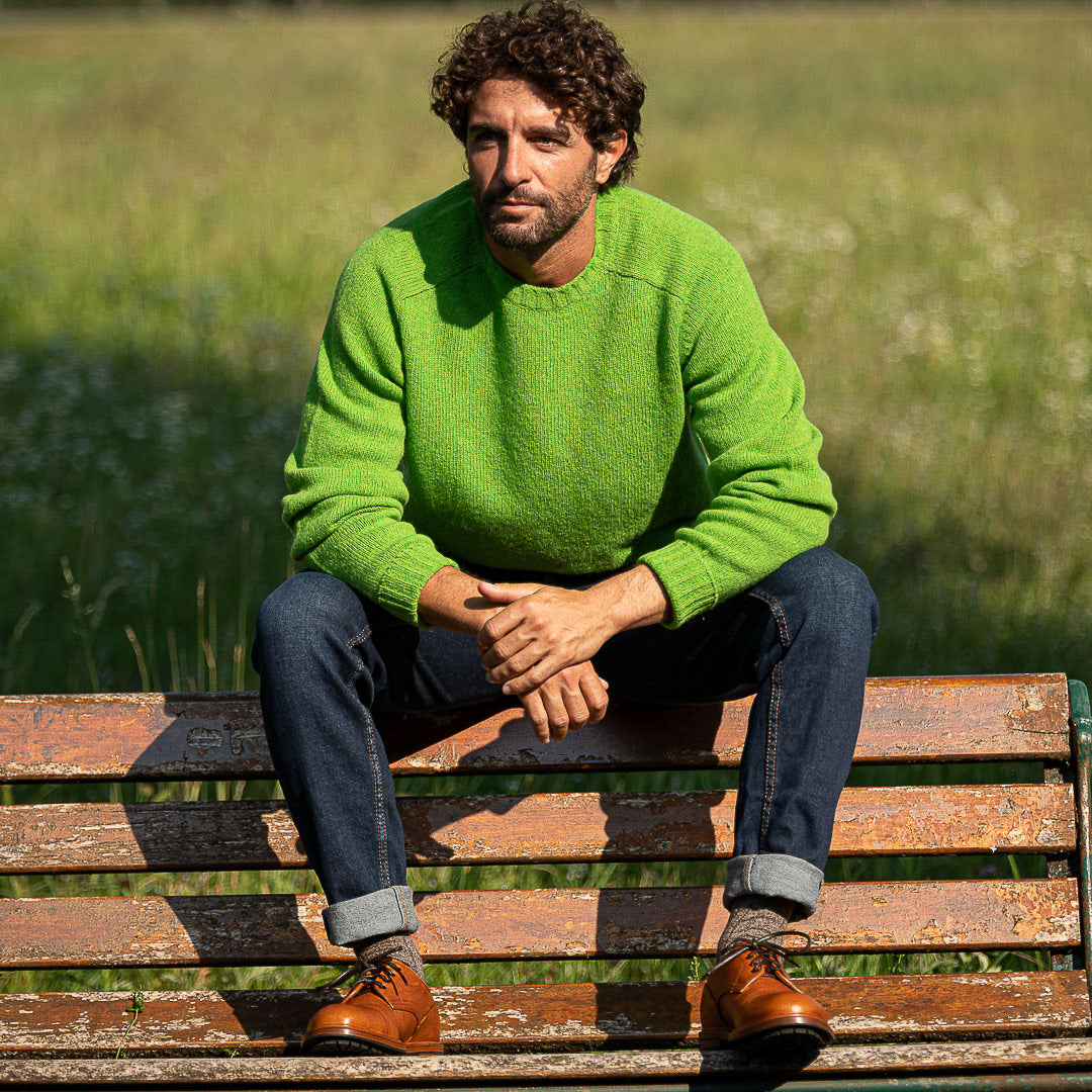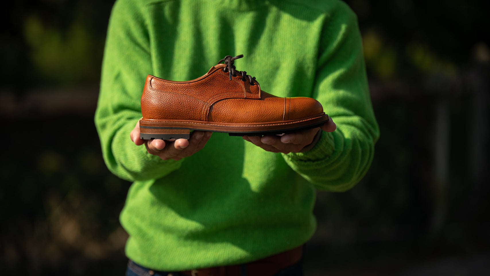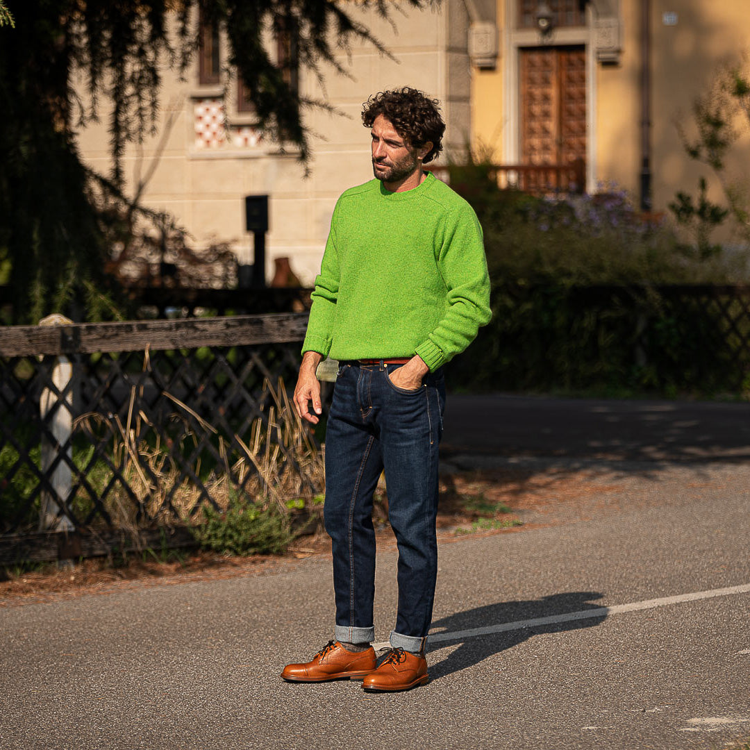 The casual derby with kudu grain leather, exhibiting this wild animal's small imperfections and expressing its country soul. Its elaborate toe box makes it perfect for men who pay attention to details: wear your cognac derby with jeans and a denim shirt, you just know that even rainy days are never a problem with a Vibram sole, just like your weekends in the countryside.
