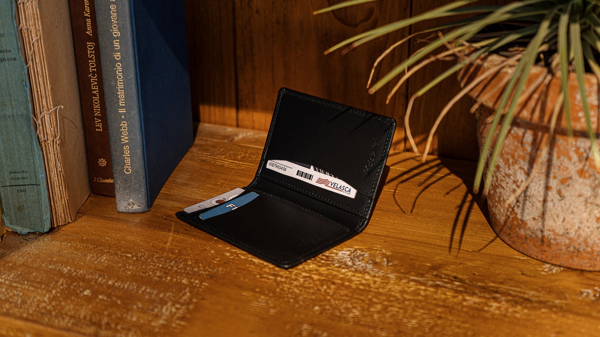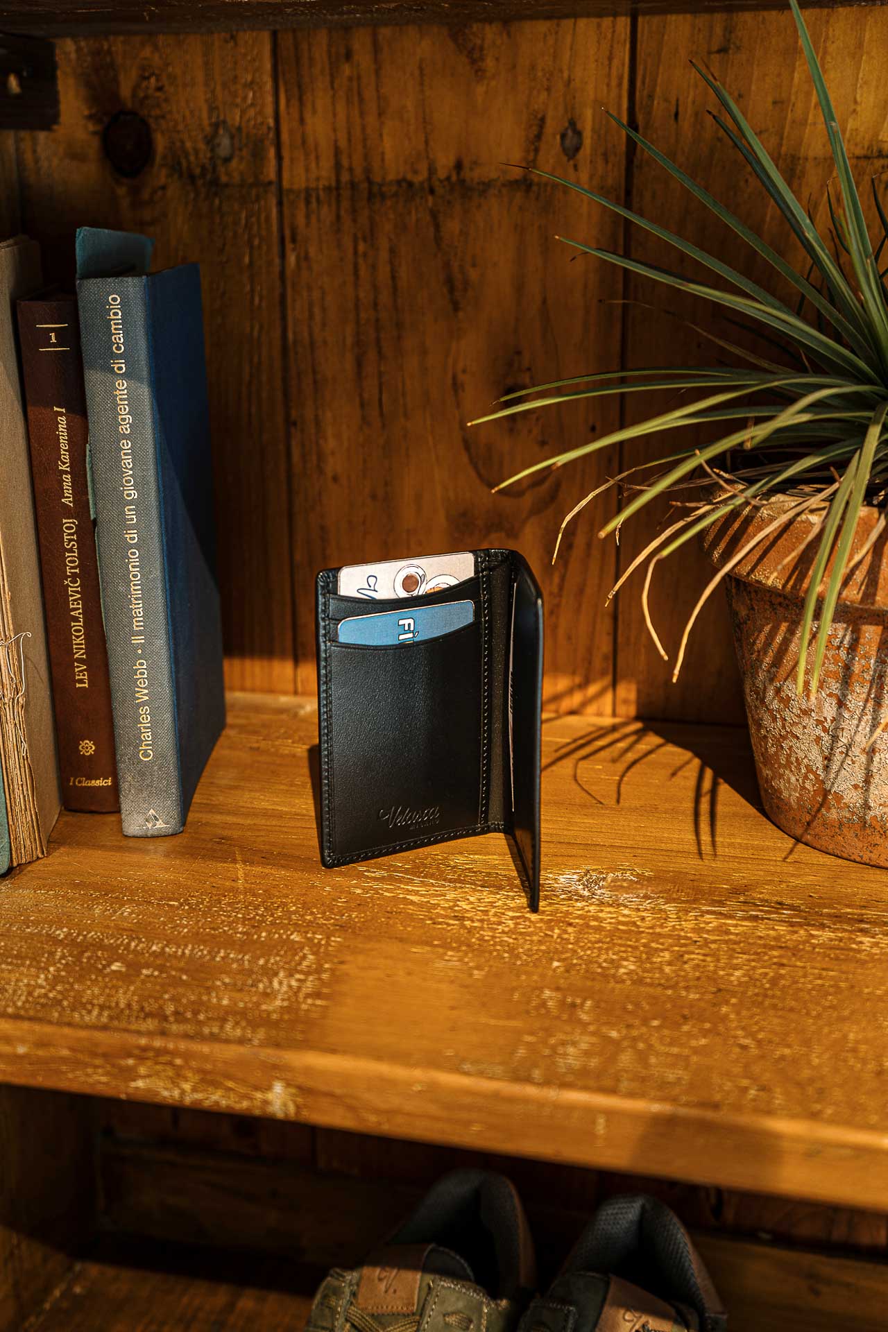 "Portadanè" is the vertical leather card holder with simple lines and six flat pockets to comfortably hold cards, banknotes and business cards at hand. Once closed, it takes up only 7 millimetres of space.
